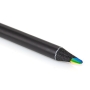 Lápiz de madera con cuerpo negro mate y escritura multicolor, presentación caja de cartón blanco en múltiplos de 40 unidades. (medida caja 18x5.6x5.3 cm) Diámetro 0.6 cm