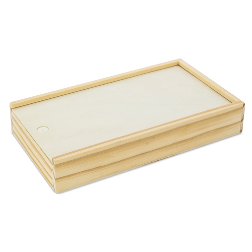 Set di giochi classici presentato in una scatola di legno. Include domino, mazzo di carte da poker, dadi e bastoncini Mikado. Un dettaglio versatile, perfetto da regalare.